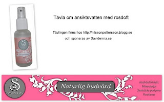 Jag tävlar om ett ansiktsvatten med rosdoft från Saviderma.Tävlingen finns hos Familjen Pettersson, klicka HÄR för att komma direkt till tävlingen